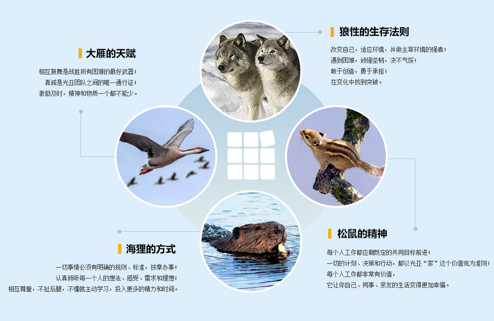 大雁為何可以飛越寒冬?因為它們懂得相互鼓舞,當雁群中成員掉隊了,其它成員就會發出叫聲以示鼓勵;它們保持人字形隊伍飛行,扇動氣流減小后面雁群的阻力,領頭雁累了,另一只豪不猶豫上前替補。正是這種善于奉獻、團結合作促成了高效率。